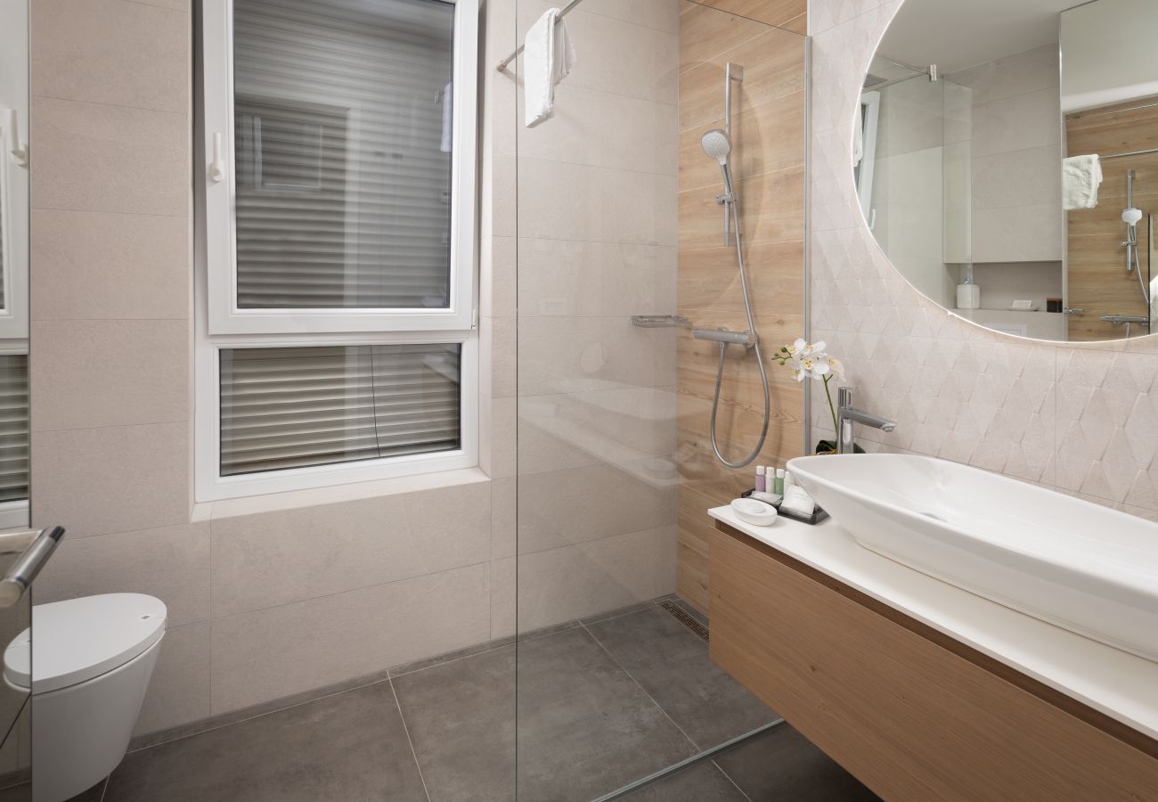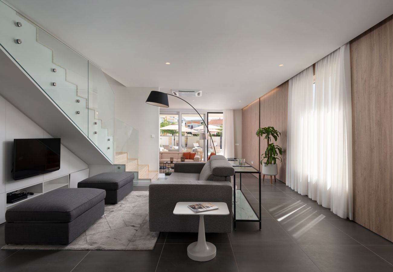 Die Villa erstreckt sich über drei Etagen, ist voll klimatisiert und bietet Platz für 8+2 Gäste. Im Obergeschoss erwarten Sie vier geräumige Schlafzimmer, luxuriös geschmückt. Während drei Schlafzimmer mit gemütlichen Doppelbetten ausgestattet sind, verfügt ein Zimmer über zwei Einzelbetten, die bei Bedarf nahtlos kombiniert werden können. Jedes Schlafzimmer verfügt über ein opulentes eigenes Badezimmer mit Dusche. Für zusätzliche Gäste bietet das Spielzimmer ein großzügiges Schlafsofa.